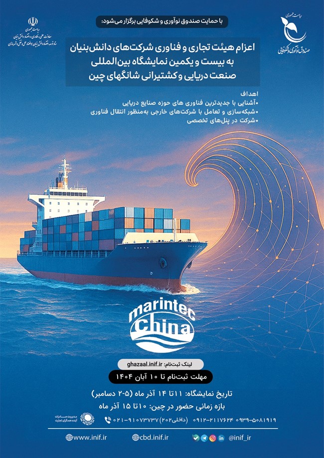 ستاد توسعه اقتصاد دانشبنیان هوافضا، حملونقل و شهرسازی معاونت علمی، فناوری و اقتصاد دانشبنیان ریاستجمهوری، با همکاری صندوق نوآوری و شکوفایی، اقدام به اعزام یک هیات تجاری و فناوری متشکل از نمایندگان شرکتهای دانشبنیان به نمایشگاه بینالمللی صنعت دریایی و کشتیرانی چین (Marintec China 2025) کرده است.